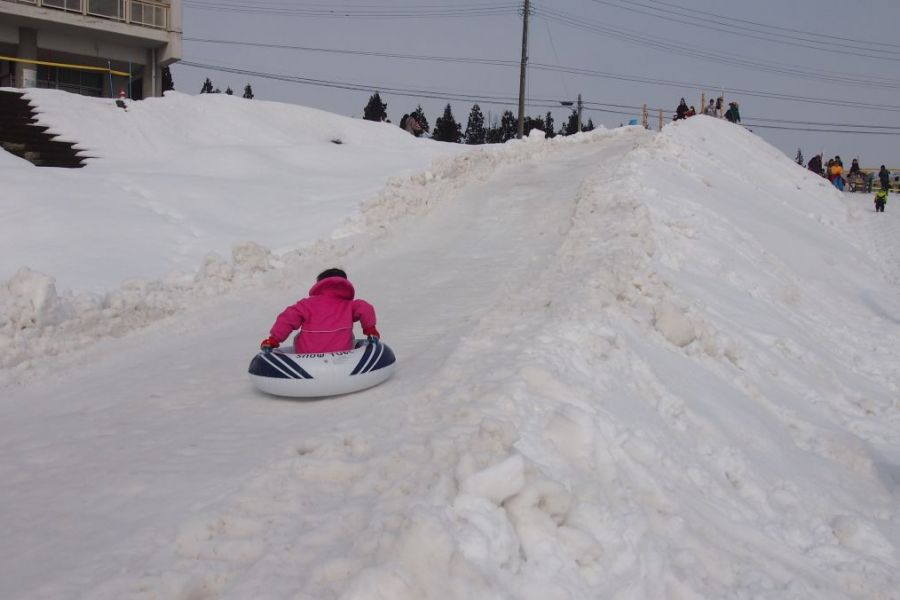 雪の滑り台やスノーモービル体験など、スノーアクティビティが盛りだくさん。また、『トチオノアカリ』が、趣のある古民家を照らします。夜は幻想的なゆきあかりの中で、雪上花火を楽しめます。