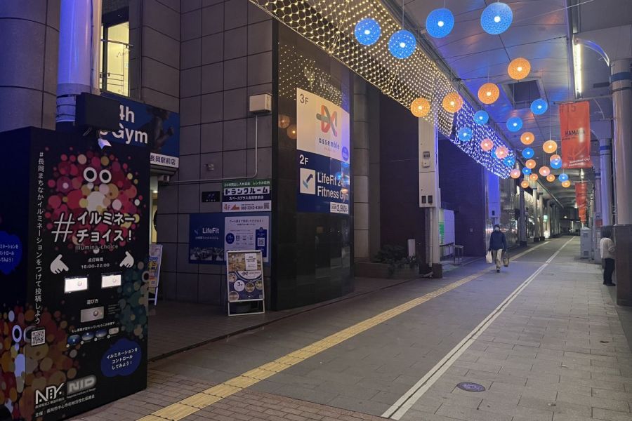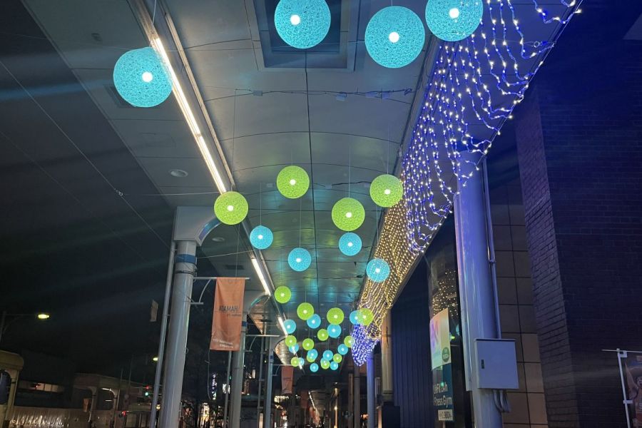 さらに今回は、アーケード天井に吊り下げ式のナイアガライルミを新たに設置!人の動きに合わせて発光し、より一層明るく照らします♪