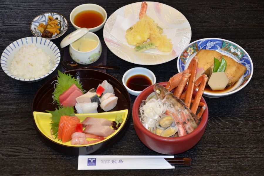 ほてるあすか れすとらんはとば寺泊の海の幸と地元食材を使用した料理に舌鼓